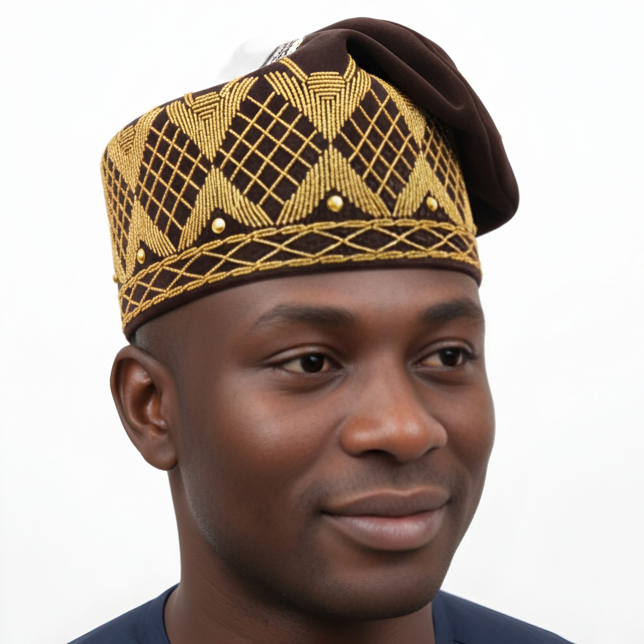 The Golden Lattice Fila offers a unique and grounded aesthetic for the modern traditionalist. The warm, chocolate brown velvet base is overlaid with a precise, architectural gold grid (lattice) embroidery, creating a look that is both structured and stylish. This cap is an excellent choice for those who prefer more muted, earthy tones without sacrificing the prestige of gold detailing. It is a distinguished accessory that carries an air of professional elegance and cultural pride, shipped directly to you from our Canadian workshop.